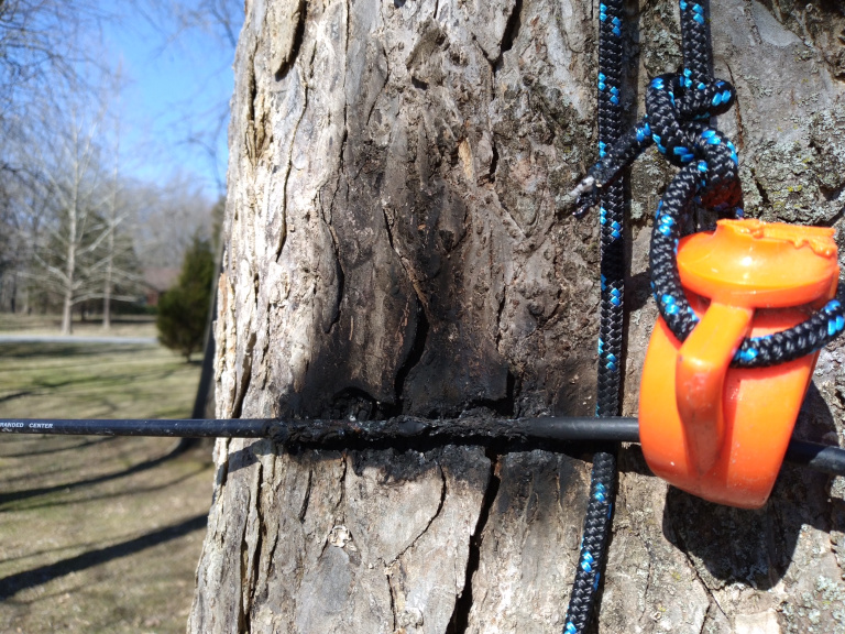 of 35′ telescoping aluminum tubing, coupled to 2x, 100′ top wires on 4′