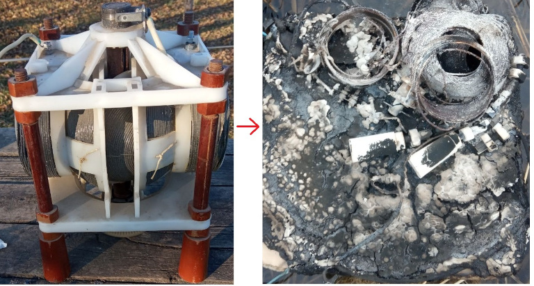 Oleg, R7LP sends this before and after photo of his burned-out variometer.